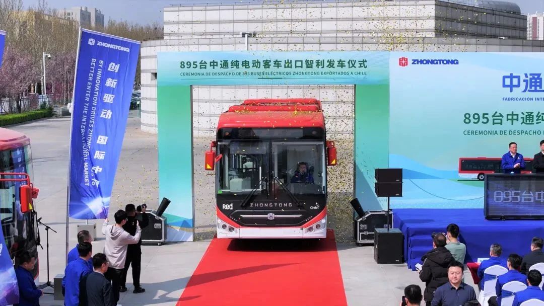 一個(gè)月后,中通客車再次甩出一把驚艷行業(yè)的“王炸”——3月26日,中通客車出口智利895臺(tái)純電動(dòng)客車首批車輛發(fā)車儀式在聊城舉行,這是近年來中國(guó)客車出口智利單批次最大訂單。