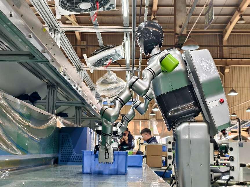 中聯(lián)重科人形機(jī)器人在生產(chǎn)車間作業(yè)