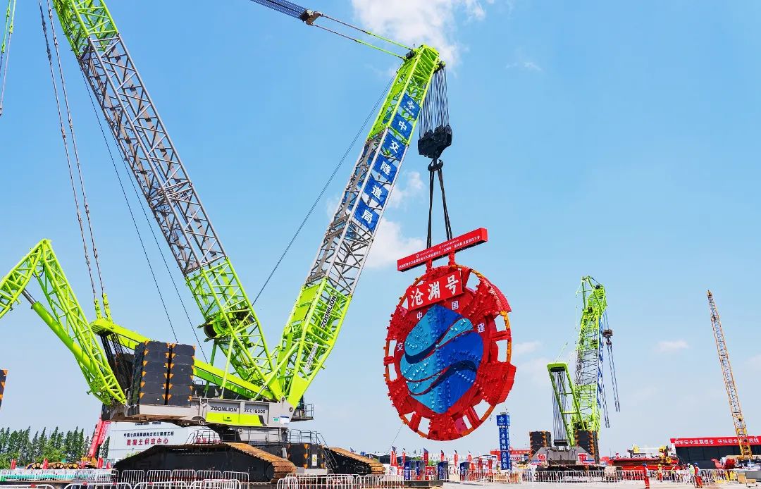 “滄淵”入井通海太,中聯(lián)重科起重機助力國內(nèi)最大直徑盾構(gòu)機吊裝