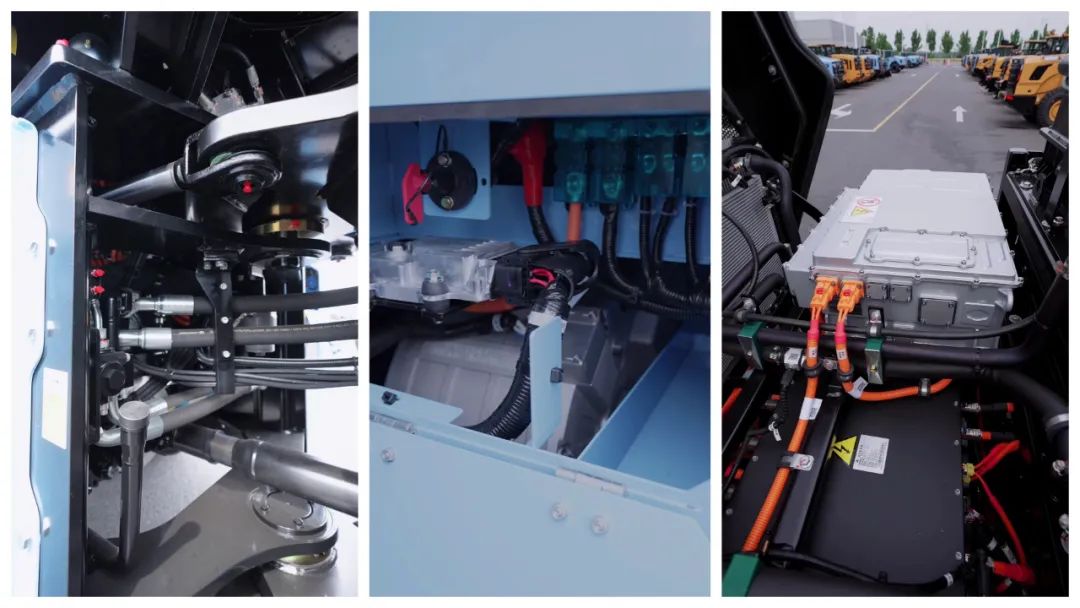 結(jié)構(gòu)強(qiáng)化設(shè)計(jì)方面,采用了7噸級(jí)電動(dòng)箱,精磨斜齒輪+多工況仿真,承載能力提升50%,噪音大幅降低;鏟斗耐磨,斗體板加厚25%、刀板材料升級(jí),插入阻力下降15%,耐磨性提升25%;配以框架門型車架,機(jī)器人焊接+11種工況仿真,抗疲勞壽命突破20000小時(shí)。