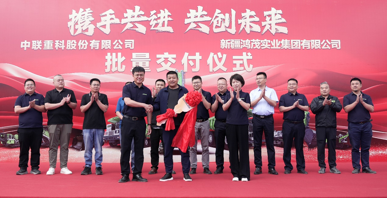 近日,在新疆壯麗的天山腳下,中聯(lián)重科隆重舉行大型礦山機械設(shè)備批量交付儀式,向新疆鴻茂實業(yè)集團(以下簡稱:新疆鴻茂)交付全球最大混動寬體車ZT160HEV、百噸級礦挖ZE1350G等數(shù)百臺高端裝備。中聯(lián)重科副總裁袁野、黃群出席活動,并現(xiàn)場向客戶交付象征合作共贏的金鑰匙。