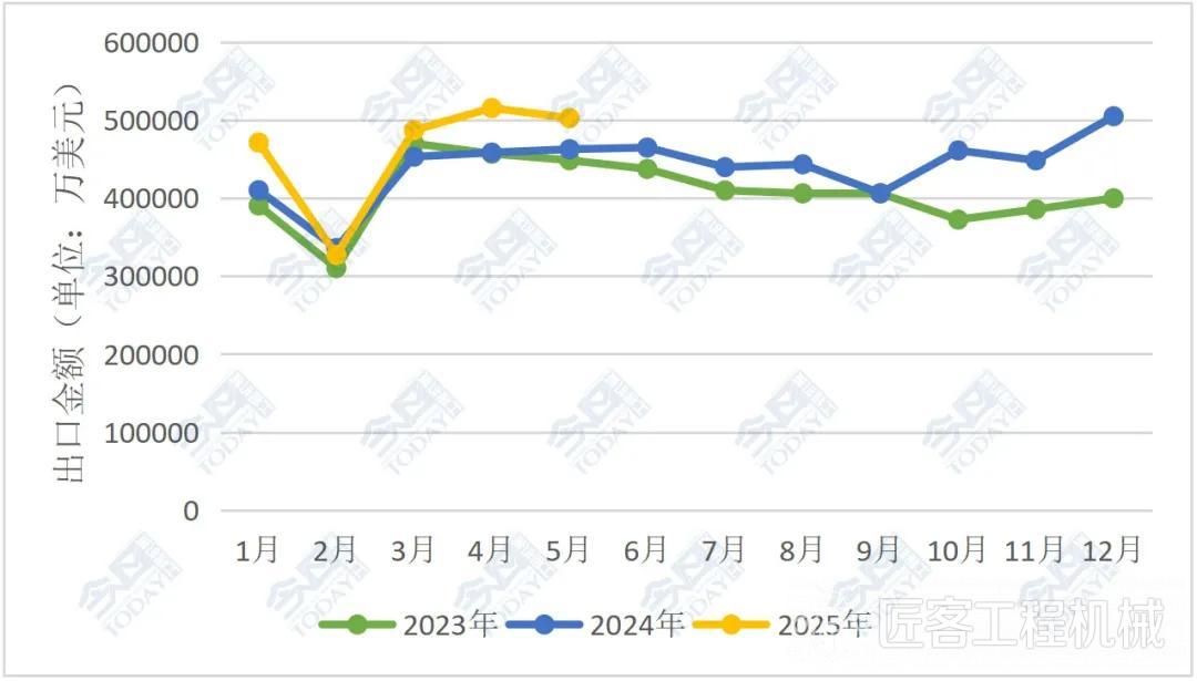 二、挖掘機出口持續(xù)增長,2025年1—5月我國挖掘機出口同比增長22.81%