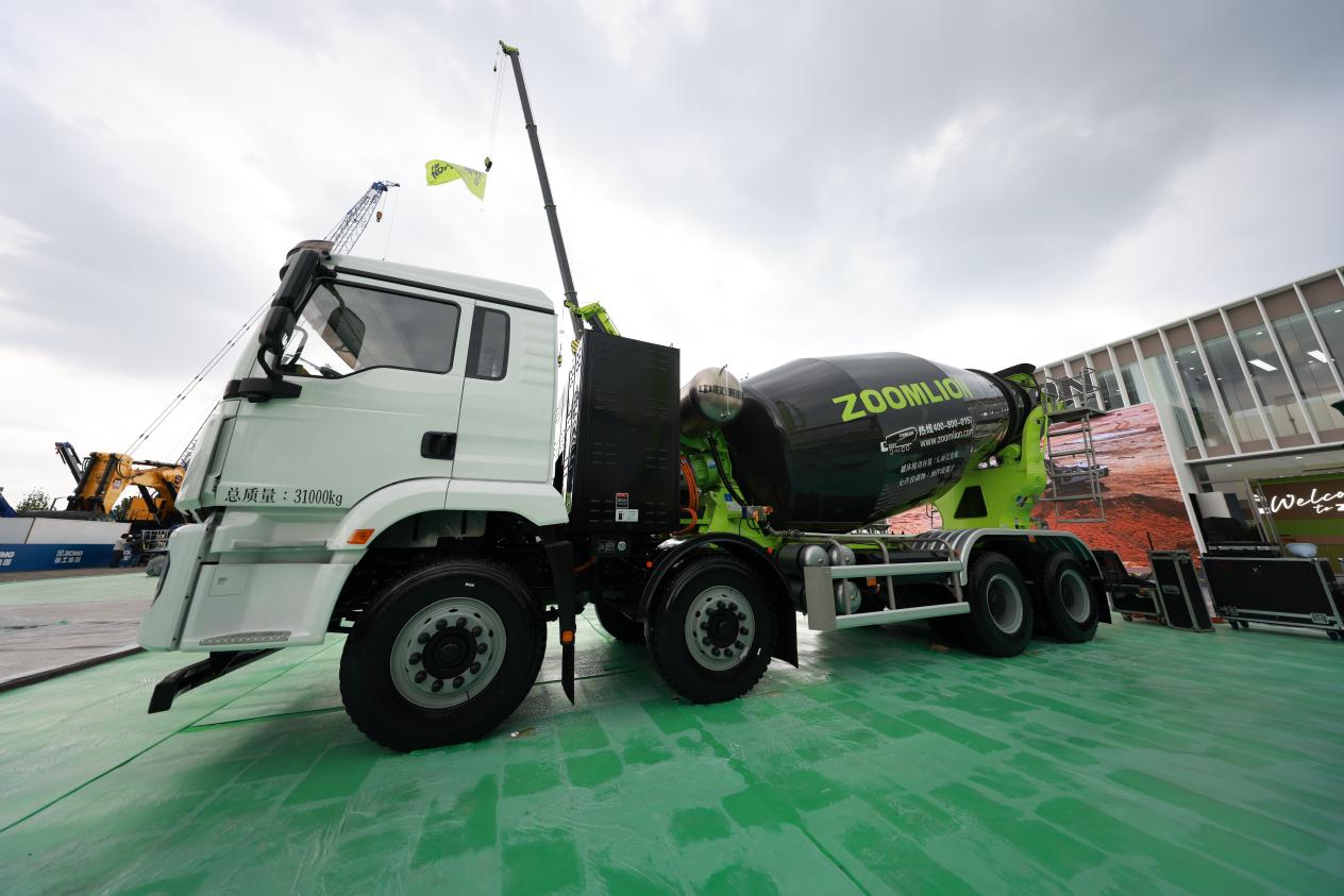 不遠(yuǎn)處,中聯(lián)重科“凌冠”純電動(dòng)攪拌車靜靜展示其零排放、低噪音的環(huán)保特性。工作人員介紹,該車綜合電耗僅1.5kW·h/km,支持雙槍快充,防水性能通過(guò)1.2m涉水驗(yàn)證,確保在各種惡劣天氣下安全可靠運(yùn)行,即使在城市夜間施工也可輕松滿足需求。其搭載的AI視覺(jué)盲區(qū)檢測(cè)系統(tǒng)等,可實(shí)現(xiàn)智能防撞與疲勞駕駛預(yù)警,觀眾紛紛感嘆其科技感十足。