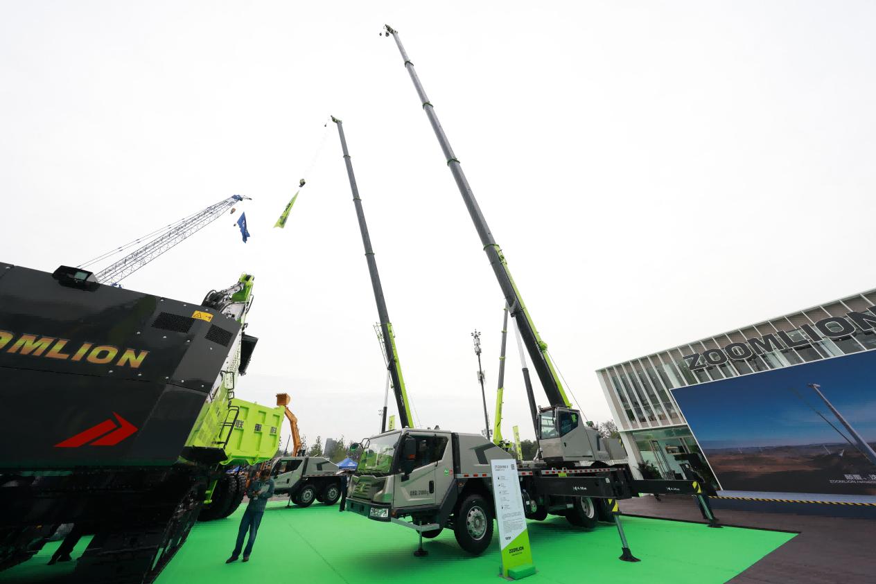 隨車起重機(jī)ZLT3500V501則擁有超廣作業(yè)幅度、超長(zhǎng)伸臂高度、超高起重穩(wěn)定性,高效靈活、性能強(qiáng)勁;該產(chǎn)品擁有20m極致臂長(zhǎng)和8m支腿跨距,展示出極強(qiáng)的作業(yè)靈活性,搭載的雙聯(lián)液壓系統(tǒng),卷?yè)P(yáng)起升速度快而穩(wěn),復(fù)合動(dòng)作一氣呵成。此外,還有最大布料高度可達(dá)72.1m,行業(yè)最穩(wěn)的73m混凝土泵車,以及操控精準(zhǔn)、起重穩(wěn)定的汽車起重機(jī),這些明星產(chǎn)品成為展會(huì)現(xiàn)場(chǎng)的人氣擔(dān)當(dāng)。