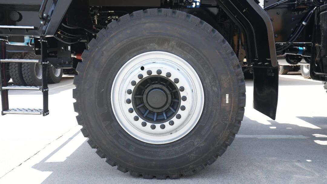 輪胎升級(jí)骨架鋼絲材料應(yīng)用,較大提升抗刺穿、劃傷等性能,更廣泛應(yīng)用混合、惡劣等多種路況;增強(qiáng)型輪輞結(jié)構(gòu),輻板厚度24mm、承載性更強(qiáng),滿足大型礦卡使用。