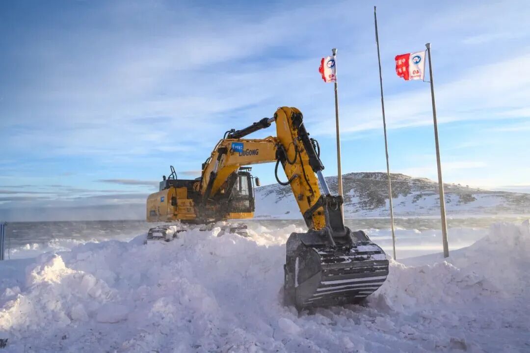 就是在這種環(huán)境下,一臺柳工液壓挖掘機正在平穩(wěn)地進(jìn)行清雪破冰作業(yè),為科考站的正常運轉(zhuǎn)和物資運輸開辟道路。它不僅是工具,更是科考隊員在極端環(huán)境中的“鋼鐵戰(zhàn)友”。