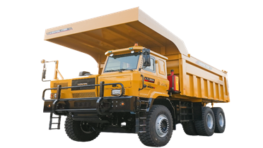 上午十點,礦區(qū)的地面鋪著一層未化的積雪。三臺LT130SHEV增程礦卡等待著每5000公里的定期保養(yǎng)。