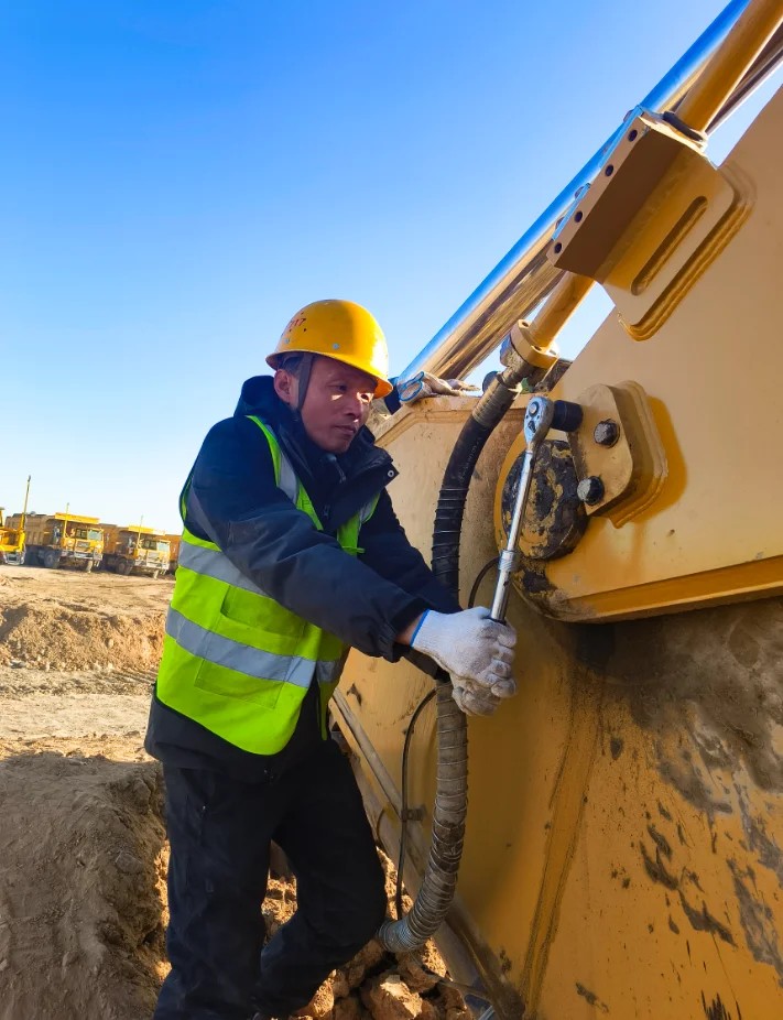 凌晨三點,大雪覆蓋礦區(qū),一臺挖掘機靜立雪中。王師傅接到通知便驅(qū)車抵達,凌晨四點,所有預(yù)定的檢測項目完成。王師傅卻多停留了片刻——他注意到履帶漲緊度在極端低溫下略有變化。于是重新調(diào)整,確保設(shè)備在雪地作業(yè)時的最佳狀態(tài)。